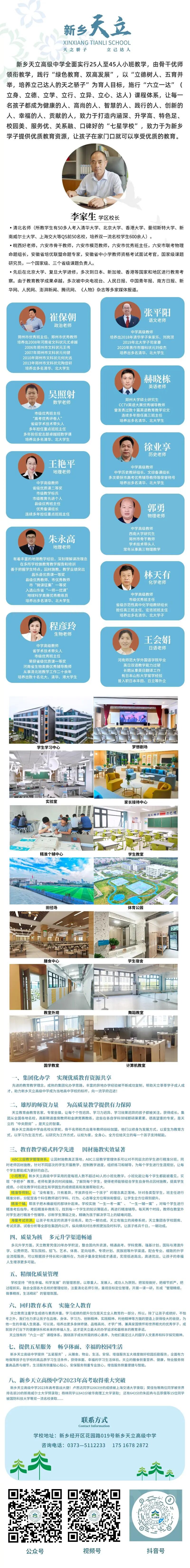 新乡天立高级中学是由天立教育集团(港股上市公司、中国教育创新示范单位、中国品牌实力教育集团)投资的一所高起点、高规格、高品位的高端寄宿制民办学校。